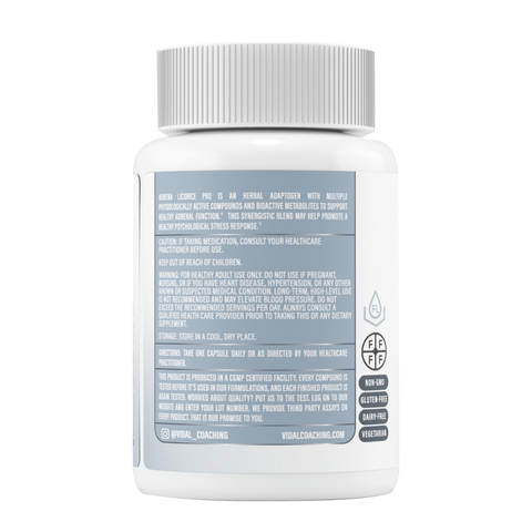 The adrenal glands are involved in many of the body's physiological functions and may indirectly cause many illnesses. Compromised adrenal function affects blood pressure, energy, and the body's stress response mechanism. Adrena Licorice Pro is an herbal adaptogen with multiple physiologically active compounds and bioactive metabolites to support healthy adrenal function.◆ This synergistic blend may help balance neurotransmitters and support the sympathetic nervous system to promote a healthy psychological stress response.◆
