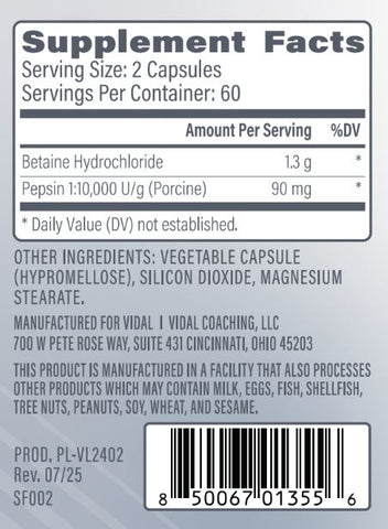 SpectraZyme Metagest now exclusively formulated for VidalRx (HCL Digest) with the same amazing product results and ingredients formerly found under the Metagenics label.