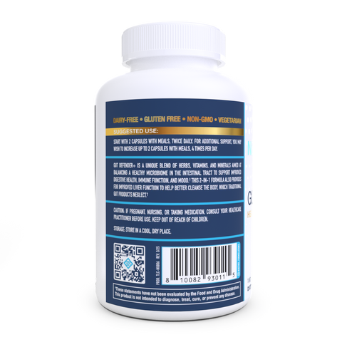 Gut Defender+ is a unique blend of herbs, vitamins, and minerals aimed at balancing a healthy microbiome in the intestinal tract to support improved digestive health, immune function, and mood. This 2-in-1 formula also provides for improved liver function to help better cleanse the body from unwanted gut intruders, which traditional gut products neglect.